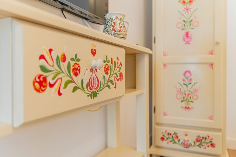 Prima camera este denumita “1910”, iar elementele de design interior reamintesc de resursele folosite in vremurile respective (lemn, elemente mestesugite din fier), adaugand confortul zilelor moderne prin facilitati premium. Mobilierul este sculptat manual din grinzi de lemn apartinand unei suri vechi. Cea de-a doua camera poarta numele „1950” si onoreaza traditionala si delicata arta rurala Torocko, unica in lume, intregul mobilier fiind pictat manual in acest stil frumos. Camera „1980” pune in scena designul interior al unei case romanesti din perioada comunista. Cele mai multe decoratiuni dateaza din acea epoca, sunt bine conservate si functionale. Ultima camera, „2023”, este o suita moderna formata din doua camere amenajate pentru a evidentia luxul si confortul epocii contemporane.